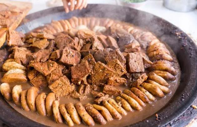 北京卤煮是北京著名的特色小吃,也是一道药膳,以猪肠和猪肺为主料,