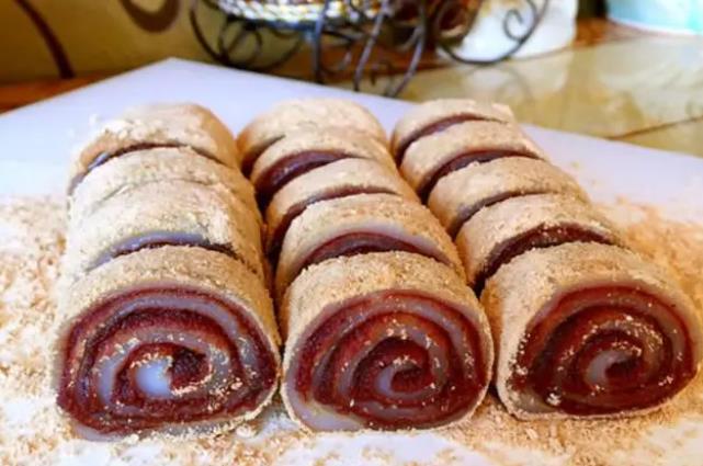 最后将其卷起,切成小块。