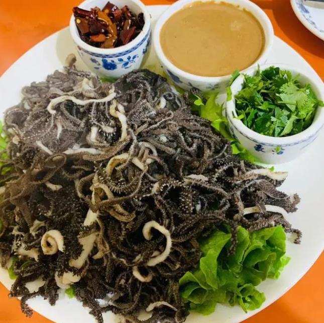 韭菜花的咸香,与猪肠和猪肺的糯软口感相互交织,形成了一道独特的美食。