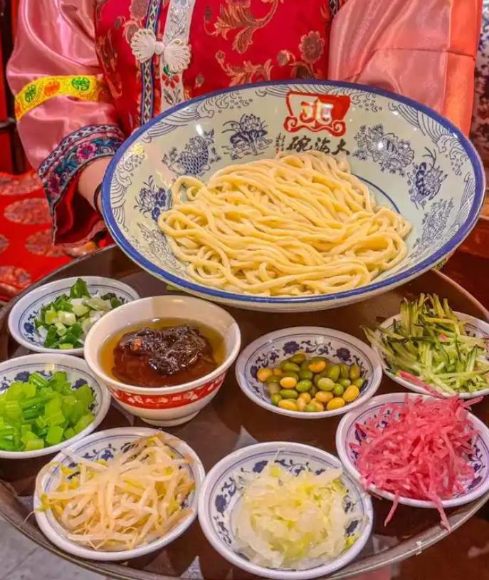 走进大海碗京菜炸酱面,仿佛穿越回了老北京。古色古香的装饰,高端大气的布局,带着一丝怀旧气息,氛围感直接拉满。每一处细节都透露着对传统文化的尊重与传承,让人在品尝美食的同时,也能感受到浓郁的老北京文化氛围。