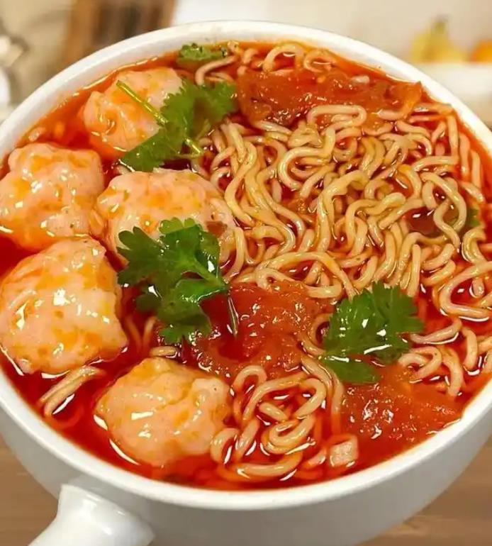 这道面可是我的开胃小能手!酸酸甜甜的番茄搭配辣辣的辣椒,再加上鲜嫩的虾仁,简直是绝配。