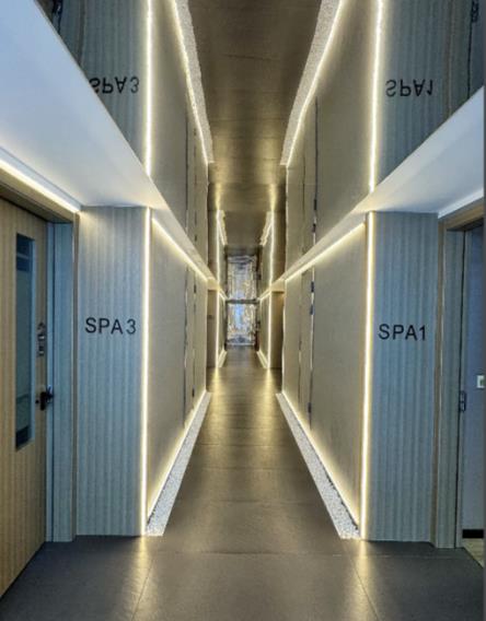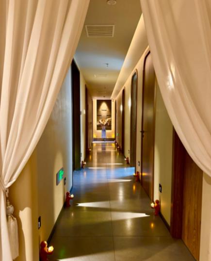 环境设计:门店采用侘寂风、岩洞风或新中式风格,微水泥墙面、暖色调灯光营造静谧氛围,玉石屏风等高奢设计,让人瞬间放松。