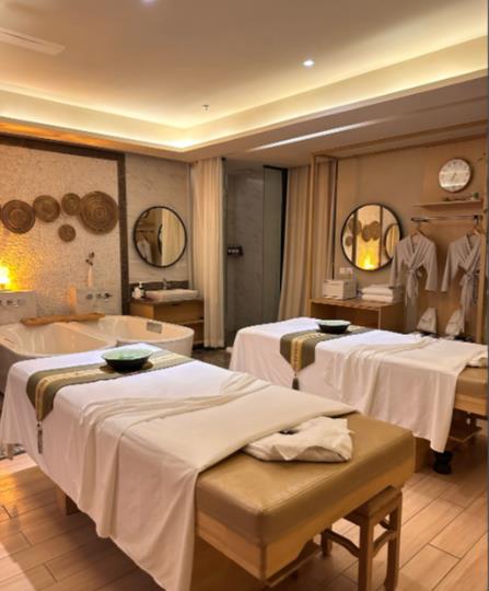高端环境:装修风格融合东方禅意与现代极简美学,辅以香氛、轻音乐和柔和灯光,营造沉浸式放松氛围。